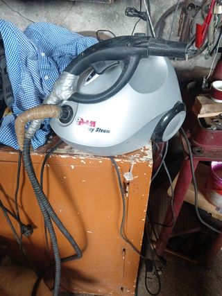 Vaporetto con difetti come da foto vaporetto funzionante esce un po' di acqua forse per colpa de tubo ma comunque funzionate utile per ricambi o per essere ripristinato.