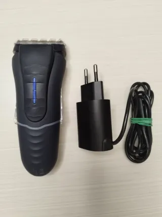 Rasoio elettrico Panasonic con custodia e cavo. - Custodia nera con specchietto interno. - Cavo di alimentazione con spina europea. - Indicazione tensione 100-240V.