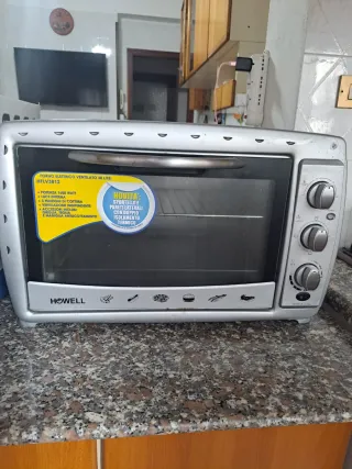 Forno elettrico ventilato Howell da 38 litri, modello HPLV3812. Ideale per la cucina di tutti i giorni. - Potenza 1600 Watt - Luce interna - 3 funzioni di cottura - Ventilazione indipendente - Accessori inclusi: griglia, teglia e maniglia antiscottamento - Sportello e pareti laterali con doppio isolamento termico