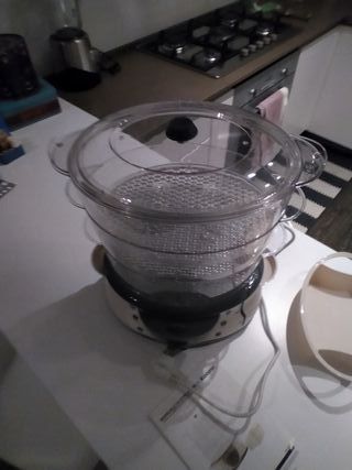 Vendo vaporiera KOOPER mod. Natura a 3 livelli, usata pochissimo, praticamente nuova, con confezione originale e istruzioni. Riscaldamento rapido, 3 cestelli trasparenti impilabili in policarbonato, pirofila in plastica per la cottura del riso, potenza 700 Watt. Design moderno e funzionale. pratica e facile da usare per cuocere cibi in modo salutare.