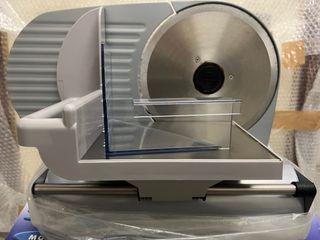 Affettatrice Severin in metallo e plastica. - Lama in acciaio inox. - Vassoio raccoglitore in metallo. - Regolazione spessore fette.in omaggio la seconda lama