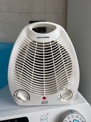 Scaldino verticale DCG HL9733, ideale per il bagno o piccoli ambienti. - Design compatto e moderno. - Colore bianco. - Maniglia per un facile trasporto.