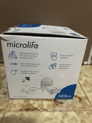 Nebulizzatore a compressore/ macchina per aerosol Microlife NEB200, compatto e facile da usare. - Sistema di nebulizzazione innovativo. - Trattamento veloce ed efficiente. - Adatto a tutta la famiglia. - Tasso di nebulizzazione: 0.40 ml/min.