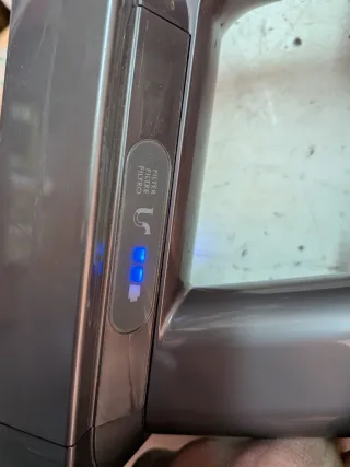 Aspirapolvere Dyson modello SV12 con batteria inclusa. Design moderno e funzionale. - Colore grigio e viola. - Batteria rimovibile. Aspirapolvere Dyson modello SV12 con batteria inclusa E solo il pezzo in foto con batteria non parte non so il problema e fermo da un po' e la batteria dice che ha una carica a due racchette io non ho l alimentatore per fare altre prove non ha spaccature