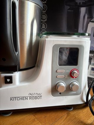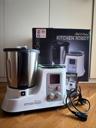 Robot da cucina Chef-O-Matic in ottime condizioni, completo di tutti gli accessori. - Ciotola in acciaio inox. - Display digitale. - Varie funzioni di cottura e preparazione.