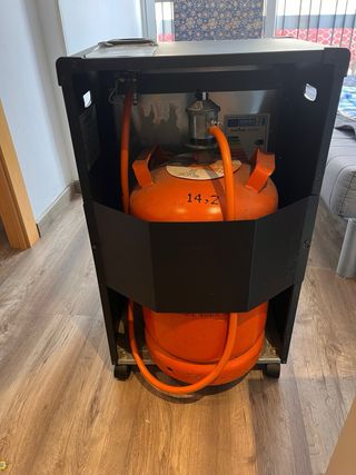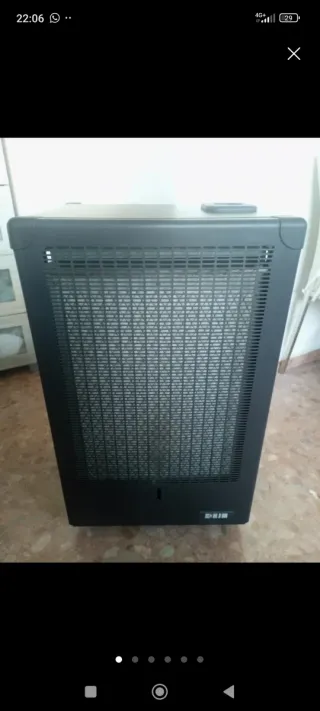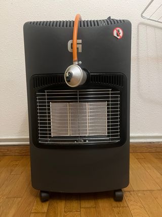 Stufa a gas portatile con ruote per facilitarne la mobilità. Ideale per riscaldare stanze. - Design moderno in colore nero. - Griglia protettiva frontale. - Ruote nella base. - Prezzo negoziabile.