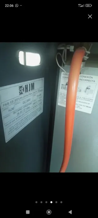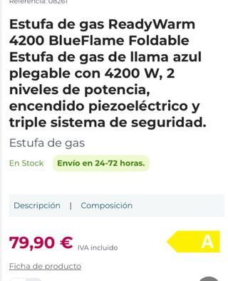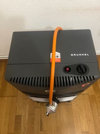 Stufa a gas Llamazul modello N 4200, preparata per gas butano. - Potenza massima di 4,2Kw. - Tre livelli di temperatura. - Accensione piezoelettrica. - Analizzatore di livelli di CO₂. - Categoria: 13+.