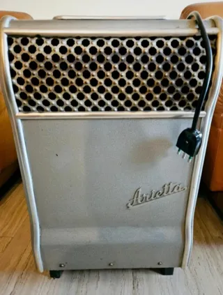 Stufa elettrica Arietta vintage. Design retrò con finitura grigia e dettagli cromati. - Marchio: Arietta - Stile: Vintage - Materiale: Metallo - Colore: Grigio - Misure:60×37×27 - Funzionante Vendo 80€ al pezzo. Le foto sono parte integrante della descrizione