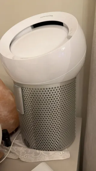 Purificatore d'aria Dyson dal design moderno e compatto. - Colore bianco e argento. - Griglia frontale con fori. - Base di alimentazione inclusa. No perditempo trattabile No scambio