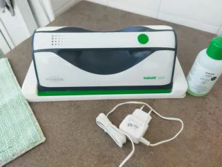 Lavavetri Folletto Kobold modello VG100. Completo di panno e caricabatterie e base di appoggio (non presente in foto) Perfettamente funzionante. - Colore bianco e verde. - Include caricabatterie e panno in microfibra.