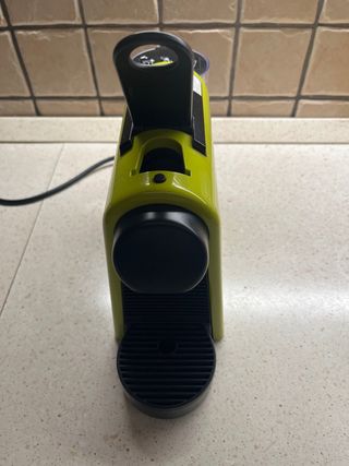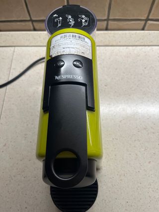 Macchina da caffè Nespresso usata pochissimo, in ottime condizioni. Da sostituire la piccola guarnizione. - Colore: Giallo vivace - Marca: Nespresso - Modello: [Modello non specificato, ma visibile l'etichetta con codice] - Design compatto ed elegante