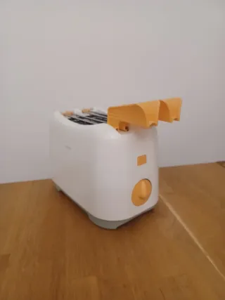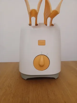 Tostapane Philips in ottime condizioni, con un design moderno bianco e dettagli arancioni. - Due fessure per il pane. - Manopola di regolazione della tostatura arancione.