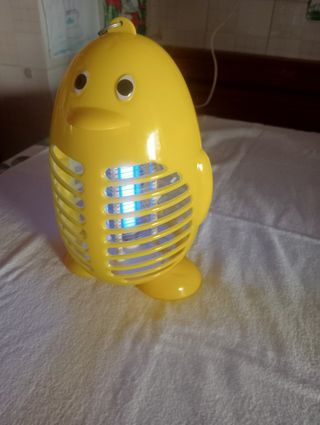 Bellissima lampada antimosche elettrica a forma di pulcino, gialla e in ottime condizioni. Alta 25 cm, larga 42 cm. Si può anche appendere. - Funziona con luce UV. - Design simpatico a forma di pulcino. - Perfetta per tenere lontane le zanzare.