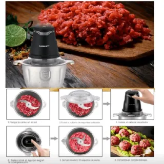 Tritacarne elettrico SOKANY per carne e alimenti con una capacità di 2,0L. Ideale per preparare diversi pasti. Design moderno in nero e acciaio inossidabile. Tappo trasparente per visualizzare il processo. Motore potente per un taglio efficiente.