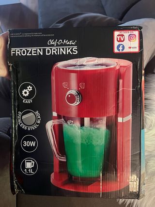 NUOVO. Fabbricatore di ghiaccio Chef-O-Matic e prepara bevande ghiacciate. - Design in colore rosso. - Lama in acciaio inossidabile. - Potenza 30W. - Capacità 1,1 litri.