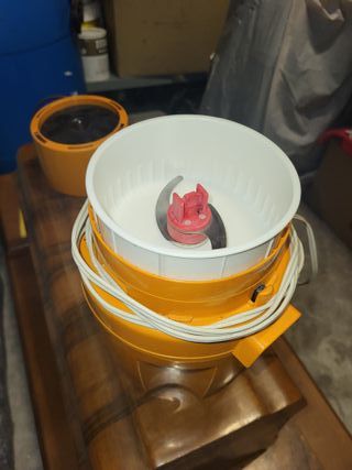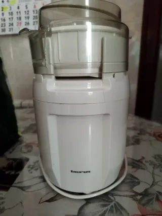 Struttura tritacarne del marchio TAURUS Tipo: R500 220-240V - 50/60 Hz 500W - Manico bianco con dettagli blu. Cavo di alimentazione bianco. Contenitore trasparente per tritacarne con lame. FUNZIONA PERFETTAMENTE