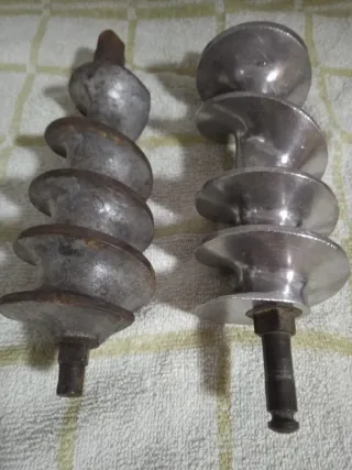 In vendita ricambi per tritacarne elettrico. Parti del numero 32 in acciaio inossidabile - Componenti metallici. - Design a spirale e con dischi.