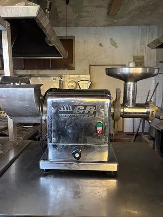 Tritacarne per uso professionale, ideale per preparare le proprie salsicce o tritare la carne in modo efficiente. - Corpo e tramoggia in acciaio inossidabile. - Potente motore elettrico. - Interruttore on/off Il costo della nuova macchina è di 1500€