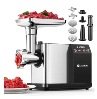 Marca Aobosi. Tritacarne elettrico 3-in-1, con 3 dischi in acciaio inossidabile per tritare, coni e tubi per farcire salsicce, motore 1200W, per un taglio rapido e fine. Caratteristiche e misure nelle foto. Tritacarne elettrico per casa, cucina e altro. Prodotto nuovo. NR-2231.
