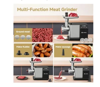 Tritacarne migliorato con 4 funzioni: tritare carne, preparare Kibbe, fare salsicce, grattugiare verdure e formaggio.