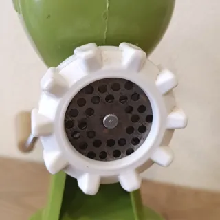 Tritacarne manuale ACEA Manodomestici, ideale per la preparazione di carne macinata in casa. - Colore verde chiaro. - Design compatto e funzionale. - Manovella per il funzionamento manuale.