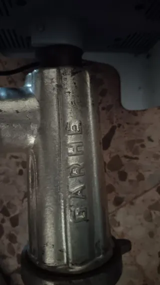 Antica macchina tritacarne del marchio FARHE. Realizzata in metallo. Marca: FARHE, Materiale: Metallo