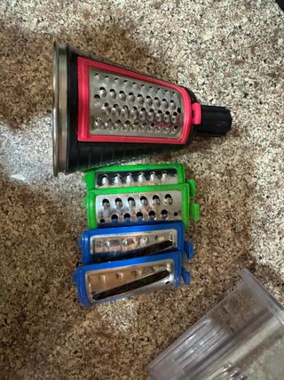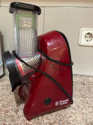 Raschiatore e tritacarne del marchio Russell Hobbs in colore rosso. Ritiro a Gracia, Barcellona. Design compatto. Include accessori per grattugiare e tritare.