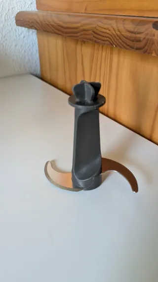 Cuchilla de repuesto para picadora Moulinex. Pieza de plástico negro con hoja metálica.