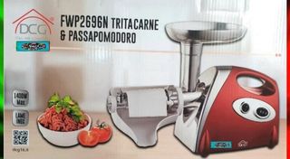 Tritacarne e passapomodoro DCG, modello FWP2696N. - Potenza massima 1400W. - Lame in acciaio inox. - Design italiano.