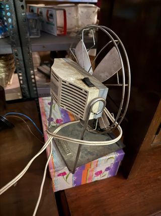 Ventilatore da tavolo vintage marca Termozeta. Un pezzo d'epoca per dare un tocco retrò alla tua casa. - Design classico. - Griglia protettiva in metallo.