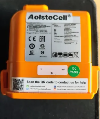 Batteria ricaricabile Li-ion AolsteCell. - Modello: 70NR19/66 per aspirapolvere LG Cord0 - Capacità: 2.4Ah/8.64Wh (Min 2.3Ah/87Wh) - Prodotto in Cina - Certificazioni CE, EAC, Li-ion20 -La batteria funziona bene quando si usa l'aspirapolvere a velocità normale, invece se si vuole aspirare alla velocità massima tende a spegnersi.