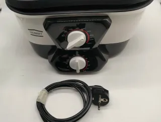Friggitrice elettrica HOMMY, completa di accessori e griglie, mai utilizzata. - Design moderno con coperchio trasparente. - Manopole per la regolazione della temperatura e del tempo. - Cavo di alimentazione incluso. Utilizzabile in casa, Hotel, Ristorante, Osteria, Barca, Camping, Camper, Roulotte, Pizzeria, Friggitoria.