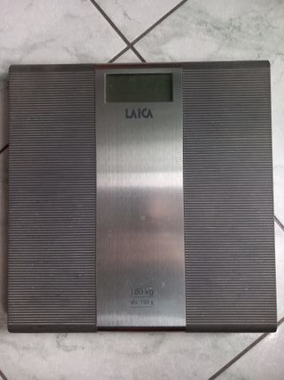 Bilancia digitale pesapersone Laica con piattaforma antiscivolo, portata fino a 180 Kg, ampio display con sensori ad alta precisione, accensione e spegnimento automatici. Colore grigio, misure cm.33 x 32 x 2,5. Funziona con 2 pile piatte da 3 volt. Usata poco. - Capacità massima: 180 kg - Precisione: 100 g - Design moderno in metallo e plastica