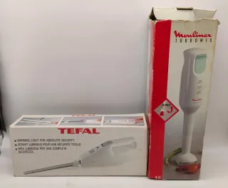 In vendita due piccoli elettrodomestici da cucina, un coltello elettrico Tefal e un frullatore a immersione Moulinex. - Coltello elettrico Tefal con spia luminosa per sicurezza. - Frullatore a immersione Moulinex Turbomix con funzione Turbo. Perfettamente funzionanti, ancora nelle loro confezioni originali.