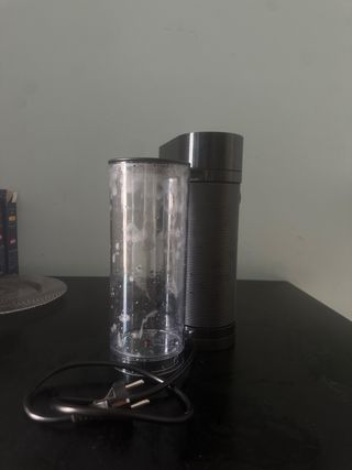 Macinacaffè elettrico Braun, ideale per macinare chicchi di caffè. Il suo design compatto lo rende facile da riporre. - Contenitore trasparente per il caffè macinato. - Coperchio trasparente per il vano chicchi. - Selettore timer con diverse impostazioni.
