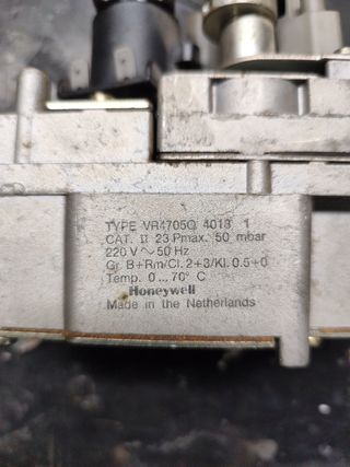 Valvola gas modello 25M42S. - Tipo 2 a. - 220/240 VAC. - 9,6 VA 50/60Hz. - Classe B+B Gr 2. - IP20. - Temperatura 0°-60°C. - Pressione massima 50mbar. - Range 7,0-11,5mb. - Classe C FAMILY 2. - DIN - DVGW Reg. no, 92.01 e 067. Usata pochissimo poi sostituito radiatore a gas