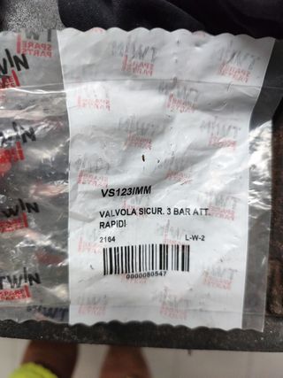 Valvola di sicurezza VS30RMP, nuova e in perfette condizioni. - Valvola a 3 bar con oring. - Maschio piccolo. - Codice: 312414 SD, K-P-2. - Numero di serie: 0000042367.