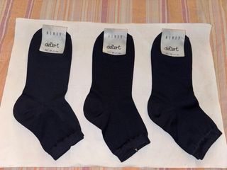 Set da 3 Paia Di Calze Corte Tutte Nuove,Da Donna,Originali Marca:”deBert” Made in Italy,Modello/Linea:”Woman”,Taglia:II=N’ 37/38 EU,100% COTONE,UGUALI,Colore:NERO TINTA UNITA,SENZA DIFETTI. DeBert,Modello “Woman”,le calze della nuova generazione. Comode,eleganti,un particolare che d’ora in poi farà parte di te. Misure: -lunghezza bordo elastico-inizio tallone:8 cm -lunghezza piede calze(tallone-punta):21,5 cm -larghezza bordo elastico:6/6,5 cm -larghezza massima piede calze:9 cm Tessuto:100% COTONE 3 Paia di Calze a €8 non trattabili,RITIRO A ERBUSCO(BS),O SPEDISCO IN TUTTA EUROPA CON SPEDIZIONE INTEGRATA A CARICO DI CHI COMPRA