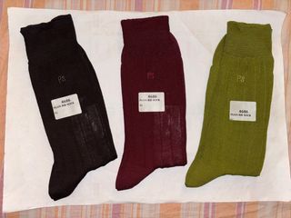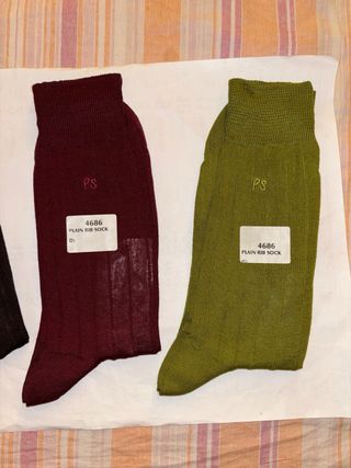 3 Paia CALZE NUOVE MAI USATE NE PROVATE(sono donna e ho i piedi piccoli n’36.5/37)IN COTONE,Con i BLOCCA PUNTE IN METALLO DEL PRODUTTORE,Lunghe Fino a Mezzo Polpaccio Circa(in base alla vostra altezza)DA UOMO,SOTTILI,LEGGERE,Firmate Originali:”PAUL SMITH” MADE IN ITALY,Taglia:UNICA(sotto le misure calze),Colore:1 paio VERDE PISTACCHIO+1 paio BORDEAUX+1 paio MARRONE MOLTO MOLTO SCURO,Con le iniziali:”PS”(Paul Smith)cucite davanti sotto l’elastico,Firma Sotto Il Piede Delle Calze:vedere tutte le foto,SENZA DIFETTI,MAI USATE NE PROVATE ✅TALLONE E PUNTA RINFORZATE lunghezza elastico-inizio tallone:21cm lunghezza punta-tallone:26,5/27 cm