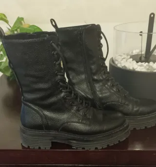 Anfibi da donna in similpelle con chiusura a lacci e zip laterale. - Tomaia in similpelle texturizzata. - Suola platform in gomma. - Design stringato. - Zip laterale per facilitare la calzata.