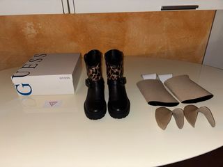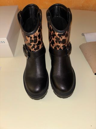 Bellissimi Stivali bassi Nuovi Mai Usati(LI HO SOLO PROVATI CON LE CALZE MA li ho acquistati questi qui il 1’ paio online sul sito della firma ma purtroppo mi sono piccoli cioè mi vanno solo con le calze molto sottili e così ho preso 1 numero in più il n’37 che invece mi è un po’ largo ma con una soletta e calze spesse vanno bene)DA DONNA/RAGAZZA,COMPLETI DELLA LORO SCATOLA ORIGINALE E CARTELLINO(il tesserino che c’è dentro la scatola e che mostro sul tavolo) E CARTA DEGLI STIVALI E CARTONE DA METTERE DENTRO AGLI STIVALI QUANDO NON LI SI USA,Firmati Originali:”GUESS”,TAGLIA N’ 36,col. LEOPA,SENZA DIFETTI,in simil pelle/eco pelle:€75
