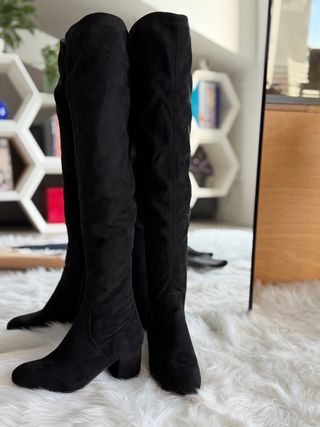 Eleganti stivali neri che arrivano sopra il ginocchio. - Materiale scamosciato. - Tacco largo e comodo.