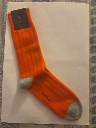 1 paio di CALZE NUOVE,MORBIDE E CALDE (NON PIZZICANO COME CERTI TIPI DI LANA),Lunghe Fino a Mezzo Polpaccio Circa (in base alla vostra altezza),Tessuto 100% CASHMERE,Invernali,DA UOMO,Firmate Originali:”PAUL SMITH”,Taglia:UNICA da Uomo(qui sotto le misure delle calze),MODELLO INTROVABILE ORA NUOVO PERCHÉ SONO FUORI PRODUZIONE,Colore:Bicolore ARANCIO CON PUNTE E TALLONI GRIGIO MOLTO CHIARO,SENZA NESSUN DIFETTO,CON SCRITTA DELLA FIRMA SOTTO IL PIEDE:guarda tutte le foto ⭐️OTTIMA IDEA REGALO PER NATALE/COMPLEANNO/SAN VALENTINO ✅PUNTA E TALLONE RINFORZATI -Lunghezza calze bordo elastico-inizio tallone:23cm -Lunghezza piede calze:24,5cm