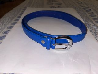 Cintura Nuova(mai usata,solo provata e mai usata),Da Donna/Ragazza,In Eco Pelle/Finta Pelle,Con Fibbia In Metallo Color Argento,marca:NON RICORDO E NON C’È SCRITTO NIENTE DENTRO LA CINTURA,colore BLU ELETTRICO(blu chiaro),con fibbia in metallo color argento lucido,SENZA GRAFFI E SENZA DIFETTI:è esattamente come si vede nelle mie foto(guardate tutte le foto):€9,00 Misure: -altezza cintura:3 cm -lunghezza tutta cintura compresa la fibbia:126 cm -lunghezza cintura esclusa la fibbia:122 cm -lunghezza cintura esclusa la fibbia e fino al foro centrale:104 cm -misure fibbia:5 cm x 4,5 cm -n’ buchi originali della cintura:5 TAGLIA:102-105
