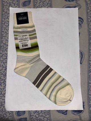1 Paio di Calze Nuove Da Uomo In Cotone Leggero,Firmate Originali:”KENZO” MADE IN ITALY (è scritto dietro sul cartellino),TAGLIA N’ 42-44 EU,colore:PANNA CON LINEE/RIGHE MARRONE E VERDE E AZZURRO DI VARIE DIMENSIONI,SENZA NESSUN DIFETTO. ✅ TESSUTO PUNTE E TALLONI RINFORZATO Misure: -lunghezza bordo elastico-inizio tallone:22 cm -lunghezza piede calze(tallone-punta):27 cm Tessuto:80% COTONE,20% POLYAMIDE(nylon) Vendo a €25 non trattabili(non accetto offerte inferiori:io le ho pagate 60€ più costo della spedizione sul sito della firma e poi sono nuove e mai aperte),ritiro a mano o più costo della spedizione a carico di chi compra