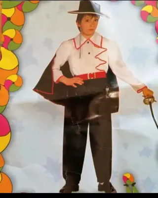 Costume da Zorro per bambino, ideale per feste di carnevale o recite. - Cappello nero si - Mantello nero non compreso Misura cm 102 da spalla Età 6 anni