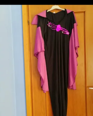 Costume da strega per il carnevale, con un design accattivante. - Maniche ampie e svolazzanti. - Dettaglio decorativo sul petto. Compreso di parrucca. Taglia M