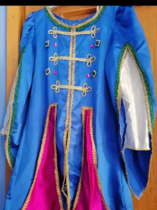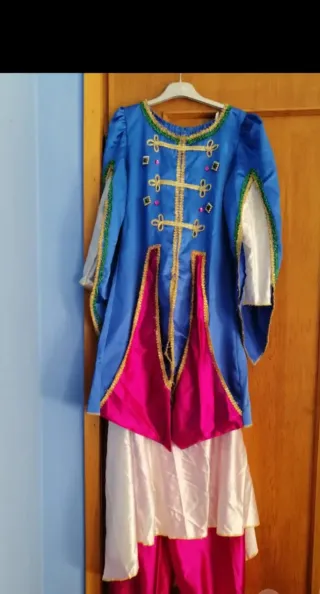 Bellissimo vestito per il carnevale, da Sultana , perfetto per travestirsi. - Dettagli dorati e verdi. - Inserti in fucsia. - Maniche bianche a sbuffo. Taglia 42 , casacca, pantalone, coprire scarpe, e retina copricapo.