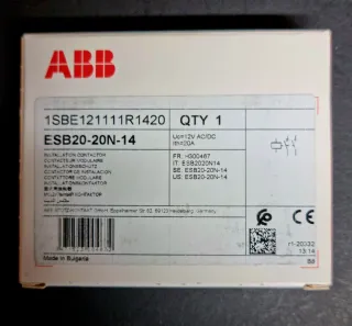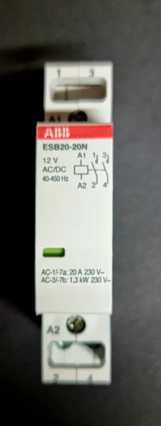 Contattore modulare ABB. - Modello: ESB20-20N-14 - Tensione: 12V AC/DC - Corrente nominale: 20A