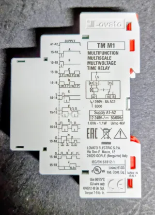 Timer multifunzione Lovato TM M1. - Modello: TM M1 - Tensione: 12...240V 50/60Hz - 12...240V DC - Quantità: 1 - Made in Italy